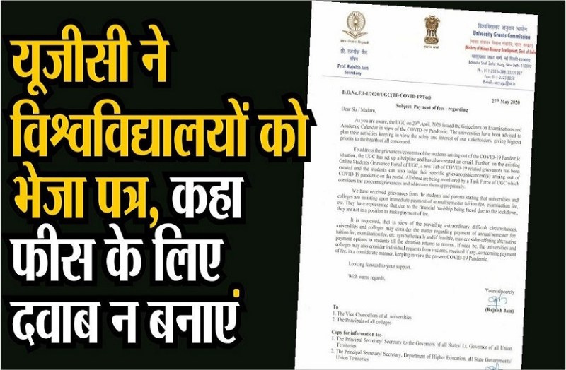 यूजीसी ने विश्वविद्यालयों को भेजा पत्र, कहा फीस के लिए दवाब न बनाएं