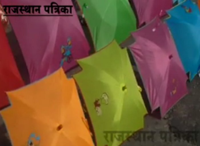 जेएलएन मार्ग पर शुक्रवार सुबह से ही रंगबिरंगी छतरियों की दुकानें लग गई है। यहां पर बच्चों से लेकर बड़ों की जरुरत के हिसाब से छतरियां बिक्री के लिए उपलब्ध है।