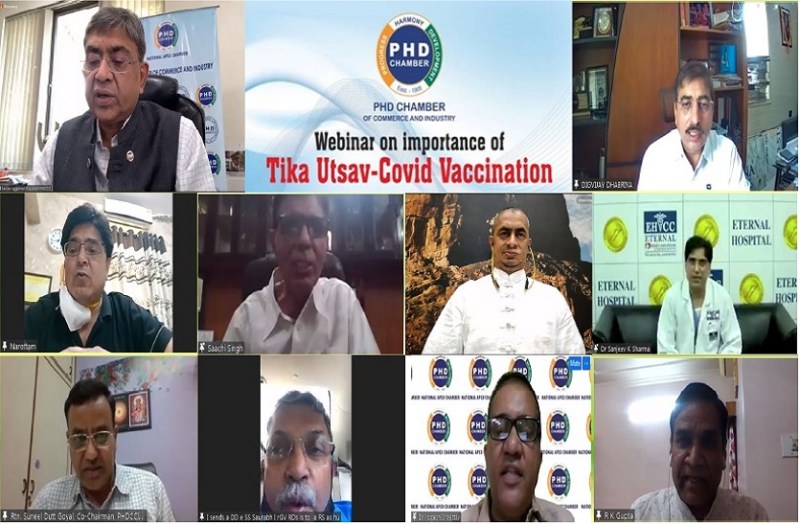 कोरोना की दूसरी लहर भयानक है, दो गज की दूरी, मास्क है बेहद जरूरी। यह विचार बुधवार को डॉ. वीरेंद्र सिंह ने पीएचडी चैंबर ऑफ कॉमर्स की ओर से इम्पोर्टेन्स ऑफ टीका उत्सव कोविड वैक्सीन विषय पर आयोजित वेबिनार में व्यक्त किए। उन्होंने कहा कि जिस प्रकार कार चलाते समय सीट बेल्ट और दुपहिया वाहन चलते समय हेलमेट जरूरी है, उसी प्रकार वैक्सीन लगवाना जरूरी है। हेलमेट और बेल्ट आपके जीवन को सुरक्षित रखने में सहायक की भूमिका निभा रहे हैं, उसी प्रकार वैक्सीन आपके जीवन को सुरक्षित रखने में सहायक है। कोरोना गाइडलाइंस की पूर्ण पालना कीजिए।