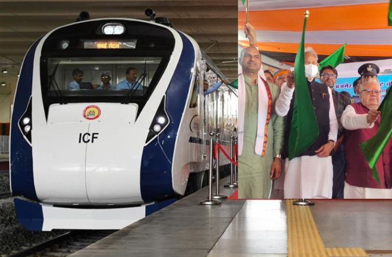 Rajasthan first Vande Bharat Express: लंबे इंतजार के बाद राजस्थान को वंदे भारत ट्रेन की सौगात मिल गई। प्रधानमंत्री नरेन्द्र मोदी ने वंदे भारत अजमेर-जयपुर-दिल्ली ट्रेन को वर्चुअली हरी झंडी दिखाकर जयपुर जंक्शन से रवाना किया। पहले दिन ट्रेन जयपुर से दिल्ली के बीच चलेगी और उसके बाद 13 अप्रेल से यह अजमेर से दिल्ली वाया जयपुर चलेगी। वंदे भारत ट्रेन के शुभारंभ समारोह में सीएम अशोक गहलोत ने पीएम नरेन्द्र मोदी का स्वागत करते हुए उनको राजस्थान को दी गई सौगात के लिए धन्यवाद दिया।