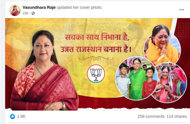 राजे की बदली प्रोफ़ाइल पिक के पोस्ट पर उनके समर्थक 'जय-जय राजस्थान' लिखकर उनके समर्थन में जमकर कमेंट्स कर रहे हैं। समर्थक उन्हें प्रदेश के भावी सीएम के तौर पर देखने की इच्छा ज़ाहिर कर रहे हैं। एक यूज़र ने लिखा, 'मिशन विधानसभा चुनाव 2023 में जन-जन की एक ही पुकार- फिर से हो वसुंधरा जी की सरकार, कहो दिल से-वसुंधरा जी फिर से।'
