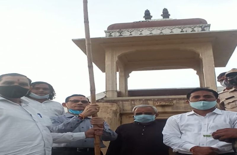 जंतर—मंतर पर पुरातत्व एवं संग्रहालय विभाग के निदेशक ने ध्वजा पूजन किया। इसके बाद विद्वानों ने सम्राट यंत्र पर सूर्यास्त के समय ध्वजा से हवा के रुख देख बारिश का पूर्वानुमान लगाया। ज्योतिषाचार्य पं. दामोदर प्रसाद शर्मा ने बताया कि सूर्यास्त के समय एक मिनट के लिए वायु परीक्षण कर हवा का रुख देखा गया, इसमें हवा पश्चिम से पूर्व की ओर बही, कुछ सैंकड के लिए हवा अग्निकोण की ओर बही, जो खंडवृष्टि को दर्शा रही है। योगायोग भी 15 अगस्त से 15 सितंबर तक कुछ स्थानों पर अतिवृष्टि को दर्शा रहे है। ज्योतिषाचार्य विनोद शास्त्री ने बताया कि हवा के रुख से खंडवृष्टि के योग बन रहे है। कहीं कम तो कहीं अधिक वर्षा होने के संकेत दे रहे है।