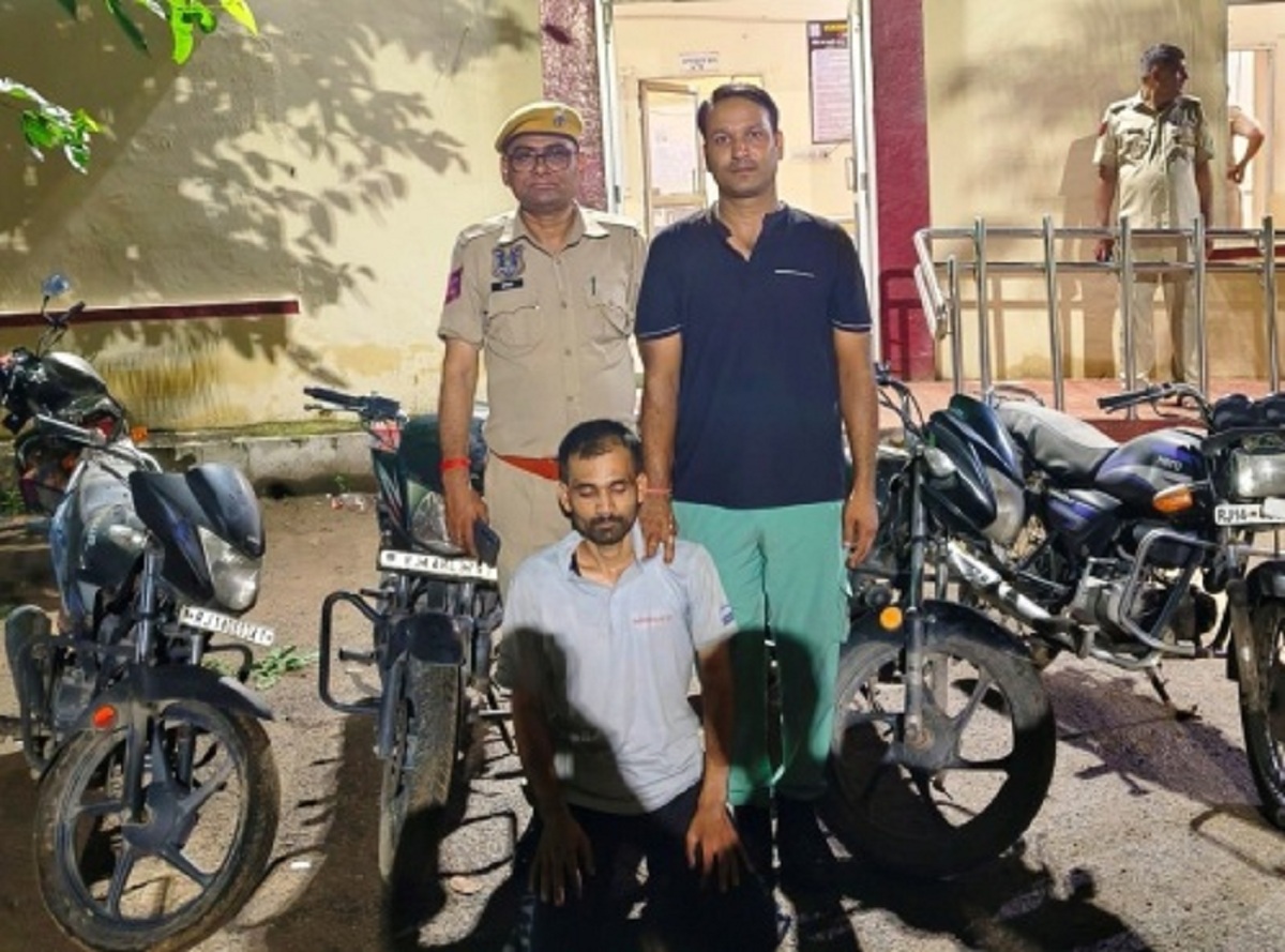 डीसीपी (दक्षिण) राजर्षि राज ने बताया कि गिरफ्तार आरोपी शाहरूख उर्फ बकरी (26) तेलीपाड़ा बापू बाजार का रहने वाला है। पुलिस ने बताया कि 1 अप्रेल 2023 को त्रिवेणी नगर गोपालपुरा निवासी मुकेश चौधरी ने रिपोर्ट दी। इसमें बताया कि 27 मार्च को उसने बाइक सुदर्शनपुरा 22 गोदाम पर खड़ी की थी। जिसे कोई चुरा ले गया। पुलिस ने मामला दर्ज करने के बाद आस-पास लगे सीसीटीवी कैमरों को खंगालने के बाद आरोपी शाहरूख को चिन्हित कर गिरफ्तार कर लिया।