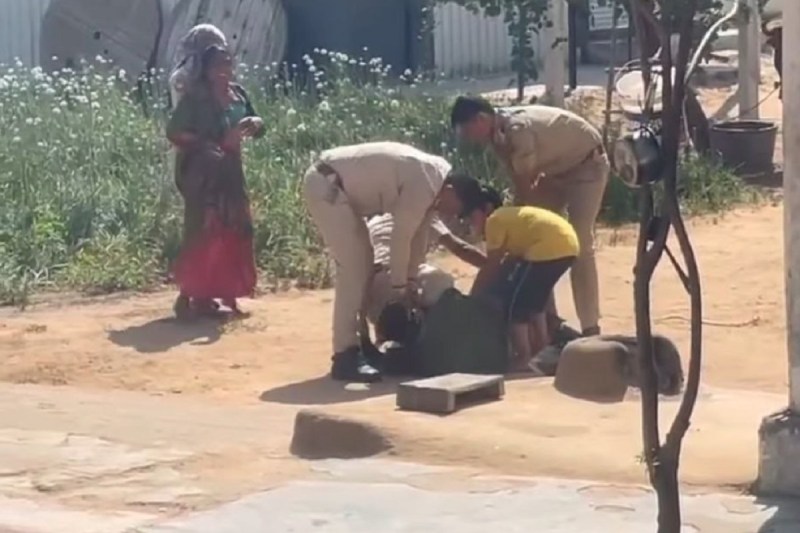 मासूम अपने पिता को पिटते देखकर रोता रहता है। कभी किसी पुलिसकर्मी के हाथ जोड़ता है तो कभी किसी दूसरे पुलिसकर्मी के। लेकिन हैरान करने वाली बात यह है कि किसी भी पुलिसकर्मी का दिल नहीं पसीजता है।