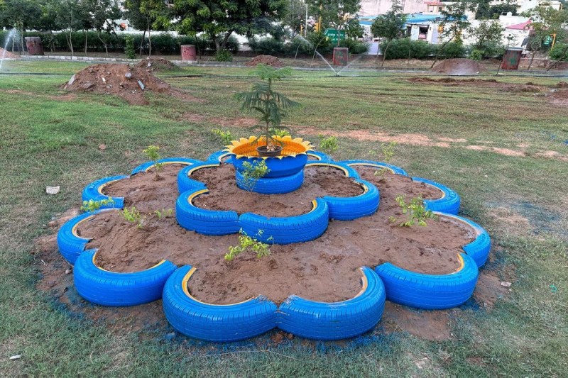 चर्चा स्थल: खराब टायरों का उपयोग कर एक चर्चा स्थल भी बनाया गया है, जहां लोग बैठकर बातचीत कर सकते हैं।