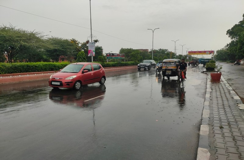 जयपुर. राजस्थान में मौसम अचानक बदला है। आसमान में छितराए बादल छाए हुए हैं। पिछले करीब 15-20 दिन से चल रहा उमस का दौर अब खत्म होने की संभावना है। उत्तर-पश्चिमी बंगाल की खाड़ी व पश्चिम बंगाल, उड़ीसा तट पर एक कम दबाव का क्षेत्र बना है। इस सिस्टम के असर से अगले दो-तीन दिन राजस्थान के करीब १५ जिलों में बारिश की संभावना बनी है। राजधानी जयपुर में शुक्रवार शाम और आज सुबह कई जगहों पर छितराई बारिश हुई। प्रदेश में कई अन्य स्थानों पर हल्की बूंदाबांदी भी हुई। राजधानी जयपुर समेत अलवर, भरतपुर, दौसा समेत पूर्वी राजस्थान के अधिकांश हिस्सों में रिमझिम बारिश का दौर शुरू हो गया है। मौसम विभाग केंद्र जयपुर के अनुसार बारिश का यह दौर पांच दिन तक रहेगा। जयपुर में आज सुबह हल्की बूंदाबांदी और बारिश से सुबह का मौसम खुशगवार हो गया। लोगों को गर्मी और उमस से राहत मिली। आने वाले दिनों में भी आमजन को गर्मी से राहत मिलेगी।