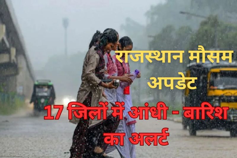 मौसम विभाग ने आज 17 जिलों में बारिश का अलर्ट जारी किया है। कोटा, बारां, झालावाड़, बूंदी, जयपुर, सीकर, दौसा, झुंझुनूं, अलवर, भरतपुर, धौलपुर, करौली, सवाई माधोपुर, बीकानेर, चूरू, श्रीगंगानगर और हनुमानगढ़ में बरसात के साथ तेज हवा चलने की संभावना जताई।