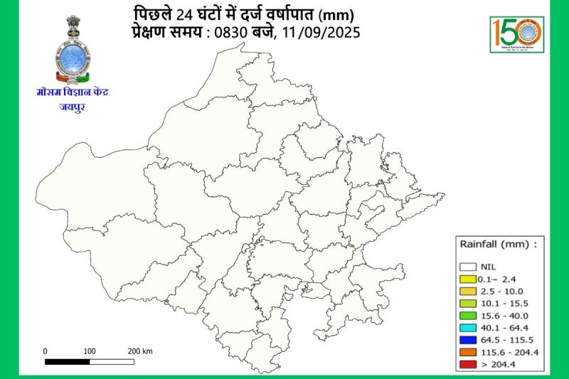 लेकिन पिछले दो दिन से राजस्थान में मौसम पूरी तरह से शुष्क बना हुआ है। मौसम विज्ञान केन्द्र, जयपुर के अनुसार पिछले 48 घंटे में प्रदेश के किसी भी जिले में एक बूंद भी गिरने की सूचना नहीं है। इसके अलावा आगामी पांच दिन और राजस्थान का मौसम भी शुष्क ही बना रहेगा।