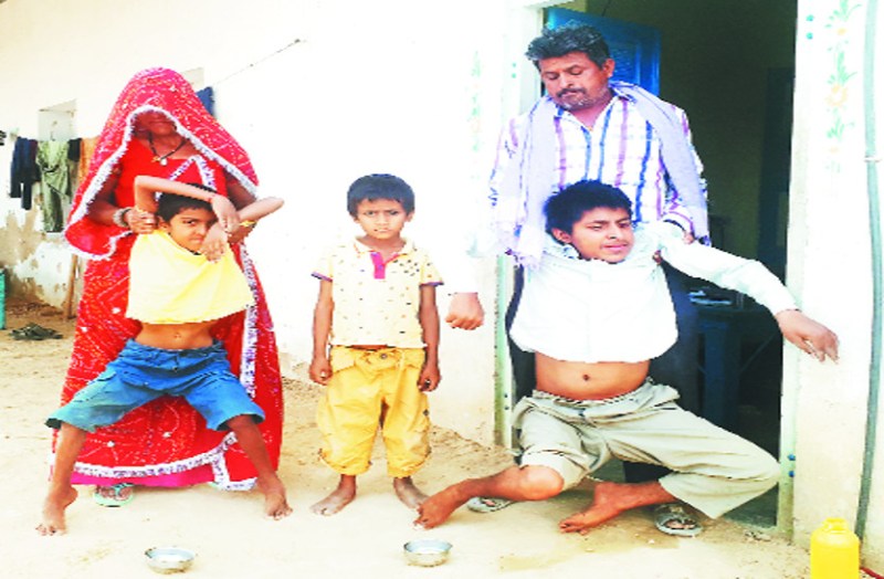जयपुर/दांतारामगढ़। औलाद के रूप में तीन लडक़े। तीनों ही ऐसी बीमारी से ग्रसित कि उठना-बैठना, खाना, पीना दूभर। धौलासरी ग्राम पंचायत की गोड़ा की ढाणी निवासी हीरालाल कुमावत के परिवार के तीन सदस्य दस साल से इस बीमारी का दंश झेल रहे हैं। हीरालाल का बड़ा बेटा युगल किशोर (16), दूसरा निर्मल (9) पूरी तरह से अपाहिज हो चुके हैं वहीं सात वर्षीय अर्जुन की हालत भी अब बड़े भाइयों जैसी होने लगी है।