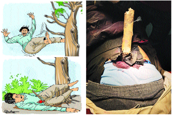 अलवर के डोडाना निवासी प्रसादी लाल खटीक को मंगलवार शाम पांच बजे ट्रोमा सेंटर लाया गया। परिजनों के अनुसार, वह पेड़ से गिरा और वहां नीचे रखा डंडा कमर के पास की हड्डी तोड़ते हुए घुस गया। प्रसादी लाल खटीक को खेरली अस्पताल लेकर गए, वहां से अलवर रैफर किया और फिर अलवर से जयपुर। शाम पांच बजे एसएमएस अस्पताल के ट्रोमा सेंटर में लाया गया मरीज। करीब 1 घंटे ऑपरेशन कर डंडा निकाला बाहर।