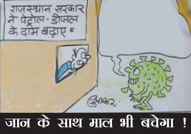 कोरोना संक्रमण से बचने के लिए किए गए लॉकडाउन के कारण देश में आर्थिक हालात बिगड़ते जा रहे हैं. राज्य सरकारों की स्थिति भी इससे अलग नहीं है. राज्यों की औद्योगिक इकाइयां हालांकि अब धीरे-धीरे शुरू हो रही है लेकिन लंबे समय तक इनके बंद रहने से राज्यों पर आर्थिक बोझ आ गया है. जिसकी भरपाई करने के लिए अलग-अलग राज्यों में सरकारें अपने-अपने तरीके से प्रयास कर रही है. इन्हीं प्रयासों के तहत राजस्थान सरकार ने पेट्रोल पर 2 फ़ीसदी और डीजल पर एक फ़ीसदी वेट बढ़ा दिया है. इस बढ़ोतरी के बाद पेट्रोल और डीजल के दाम राज्य में बढ़ जाएंगे और लोगों का सफर करना महंगा हो जाएगा .मगर इन दिनों लॉक डाउन में घर में बंद होने से लोगों की जान तो बच ही रही है साथ ही वाहन लेकर सड़कों पर न जाने से पेट्रोल का और डीजल का खर्च भी बच रहा है, जिससे इनके दामों में वृद्धि का असर जनता की जेब पर नहीं पड़ रहा है .इस लिहाज से लॉक डाउन नियमों का पालन करने से जनता की जान और माल दोनों बच रहे हैं इसी मुद्दे को देखिए कार्टूनिस्ट सुधाकर सोनी के नजरिए से