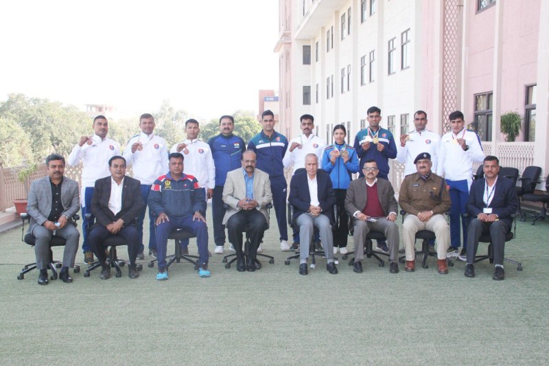 21 वी अखिल भारतीय पुलिस वाटर स्पोर्टस में रोइंग खिलाड़ी, ओमप्रकाश उप अधीक्षक पुलिस ने दो स्वर्ण पदक एवं 30 वीं सीनियर नेशनल वुशू चैम्पियनशिप में मुकेश चौधरी उप निरीक्षक पुलिस ने 1 स्वर्ण पदक तथा 64 वीं नेशनल शूटिंग चैम्पियनशिप में दर्शना राठौड़ ने 4 चार मैडल एवं पवन शर्मा ओमप्रकाश, हिम्मत सिंह, वीरेन्द्र सिंह, भूपेन्द्र सिंह सहित सभी मैडलिस्ट खिलाड़ियों एवं 8 टी 20 कलक्टर कप 2021 क्रिकेट प्रतियोगिता में राजस्थान पुलिस क्रिकेट टीम के विजेता 12 खिलाड़ियों के प्रतिनिधि मंडल ने महानिदेशक पुलिस एम.एल.लाठर तथा अतिरिक्त पुलिस महानिदेशक एवं मुख्य खेल अधिकारी जंगा निवास राव, अतिरिक्त महानिदेशक पुलिस (कार्मिक) अनिल पालीवाल, कमाण्डेन्ट पंकज चौधरी एसडीआरएफ एवं एडिशनल डीसीपी पश्चिम रामसिंह जयपुर से भेंट करके परतियोगिता में किए गए प्रदर्शन के संबंध में जानकारी दी।डीजीपी ने अभिनन्दन समारोह में उपस्थित सभी अधिकारियों ने राजस्थान पुलिस के पदक विजेता सभी खिलाड़ियो को शुभकामनाएं दी और उनके प्रदर्शन की सराहना की।
