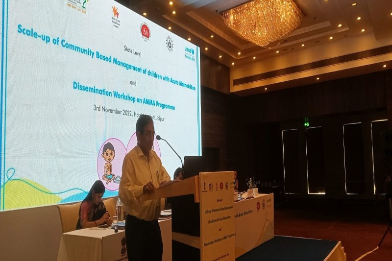 जयपुर। महिला और बाल विकास विभाग के शासन सचिव दिनेश कुमार यादव का कहना है कि राजस्थान में एक भी बच्चा कुपोषित न रहे इसके लिए हम सभी को दृढ़ता के साथ टीम भावना से कार्य करना होगा। उन्होंने कहा कि राज्य में सौ प्रतिशत सुपोषण सुनिश्चित करने का संकल्प लेकर ही हमें कार्य करना होगा। गुरुवार को महिला और बाल विकास विभाग और यूनिसेफ राजस्थान की ओर से गुरुवार को सिटी के एक होटल में एक राज्यस्तरीय कार्यशाला में उनका कहना था कि राज्य के 20 जिलों में सफलता पूर्वक संचालन के चलते शेष 13 जिलों में भी इस कार्यक्रम को लागू किया जा रहा है। '06 माह से 59 माह तक के बच्चों में कुपोषण-प्रबंधन' पर एक आयोजित इस कार्यशाला में उन्होंने राज्य के समस्त 33 जिलों में योजना का दायरा बढ़ाने की घोषणा की।