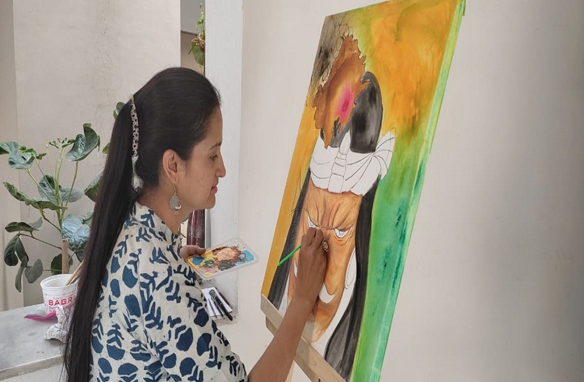 जेकेके में महिलाओं ने कैनवास पर उकेरा महाराणा प्रताप का अक्स