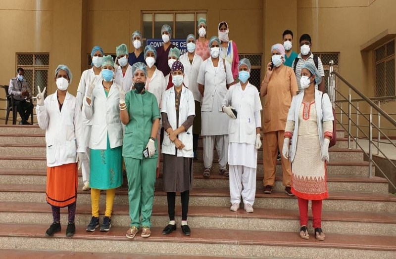 Jaipur वुमन नर्सेज ऑर्गेनाइजेशन की ओर से सोमवार को राज्य के मुख्यमंत्री अशोक गहलोत के जन्मदिवस के मौके पर सबसे बड़ै कोविड डेडिकेटेड अस्पताल में कार्यरत महिला नर्सेज ने कोरोना मुक्त राजस्थान बनाने की शपथ ली। प्रदेशाध्यक्ष विनीता शेखावत के निर्देशन में कोरोना की पहली लहर से लगातार दूसरी लहर आने तक काम कर रही सभी महिला नर्सेज ने अपने ड्रयूटी अवर्स की परवाह ना कर, हर कोरोना मरीज की सेवा में समय देने की शपथी भी ली। नर्सिंग नोडल ऑफिसर विनीता शेखावत ने बताया कि राजस्थान के हर जिले, हर ब्लॉक, सब सेंटर में महिला नर्सेज कोरोना मुक्त राजस्थान अभियान को जन-जन तक पहुंचाएंगी। सभी महिला नर्सेज लगातार वैक्सीनेशन प्रोग्राम की के सफल संचालन में भी भूमिका निभा रही हैं। कोरोना की भयावहता को देखते हुए सभी महिला नर्सेज ने शपथ ली है कि कोरोना मुक्त राजस्थान अभियान वे में अपनी महत्वपूर्ण सहभागिता निभाएंगी और अपनी ड्यूटी के अलावा भी अपना सारा समय कोविड महामारी को रोकने की गाइडलाइन की पालना करवाने में देंगी।