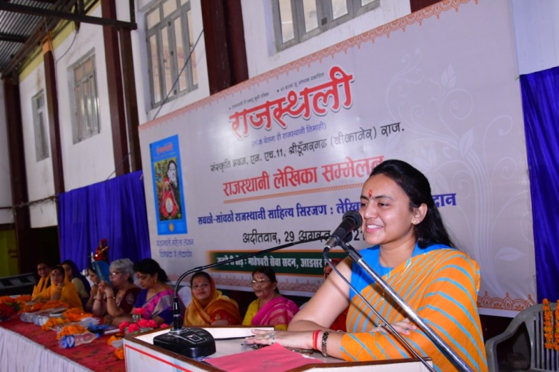 जयपुर/बीकानेर राष्ट्रभाषा हिन्दी प्रचार समिति की ओर से प्रकाशित राजस्थानी पत्रिका राजस्थली के प्रकाशन के ४५वर्ष पूरे होने के अवसर पर किया गया। जिसमें पुस्तक के प्रकाशित महिला लेखन विशेषांक का लोकार्पण किया गया। उद्घाटनकर्ता डॉ. दिव्या चौधरी ने राजस्थानी भाषा को जीवन का अंग बनाने के लिए प्रेरित करते हुए कहा कि भाषा हमारी पहचान है। हमारी बोलचाल में मातृ भाषा का होना जरूरी है। अध्यक्षता करते हुए डॉ.शारदा कृष्ण ने कहा कि महिला लेखन एक उम्मीद है। जो पड़ाव दर पड़ाव अपना सफर करते हुए विश्वास के साथ मंजिल की ओर अग्रसर है। मुख्य अतिथि प्रोफेसर विमला डूकवाल ने कहा कि मातृ भाषा को बचाने के लिए सबल पैरोकार महिला ही हो सकती है, क्योंकि वह सात पीढियों को संस्कारित करने वाली होती है। महिला लेखन अंक की अतिथि सम्पादिका किरण राजपुरोहित नीतिला ने कहा कि इस तरह के आयोजन महिलाओं के साहित्यिक हस्तक्षेप को रेखांकित करते हैं। विजयलक्ष्मी देथा ने भाषा को मां बताते हुए सन्तान के कर्तव्य बताए। समारोह संयोजक मोनिका गौड़ ने स्त्री विमर्श व योगदान की चर्चा को सुखद बताते हुए कहा कि यह महिला का होना प्रमाणित करती है। प्रधान संपादक श्याम महर्षि ने कहा कि किसी भी साहित्यिक संस्था को चलाने के लिए साहित्यकारों का जुड़ाव होना जरूरी है। साहित्य समारोह में कवि सम्मेलन की अध्यक्षता डॉ.धनंजया अमरावत ने की। यहां कविता पाठ के माध्यम से कवयित्रियों ने देश भक्ति, भाषा व संस्कृति से रूबरू करवाया।
