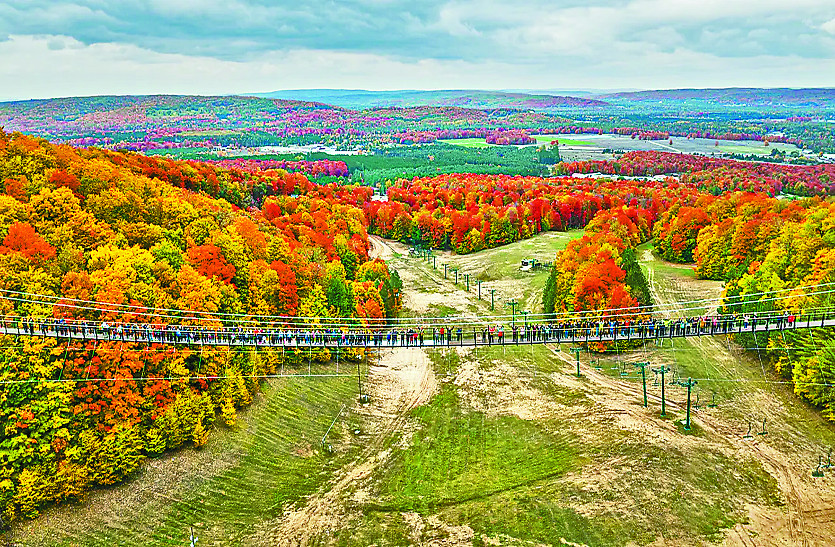 मिशिगन. दुनिया का सबसे लंबा टिम्बर टावर सस्पेंशन ब्रिज बनकर तैयार हो गया है। अमरीका के मिशिगन में बॉयने माउंटेन रिजर्व में स्थित इस पुल को हाल ही में पर्यटकों के लिए खोला गया है। 'स्काईब्रिज मिशिगन' नाम का यह पुल जमीन से सैकड़ों फीट ऊंचा है। इमारती लकड़ी से बना हवा में झूलता यह पुल 1200 फीट लंबा है। इस असाधारण ब्रिज से सैलानी बॉयने घाटी के खूबसूरत नजारों को देख पाएंगे।