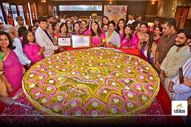 Hariyali Teej 2024: जयपुर ग्रेटर निगम ने सोमवार को मुहाना रोड स्थित बैंक्वेट हॉल में तीज महोत्सव मनाया। इसमें आकर्षण का केंद्र सवा सात फीट का 455 किलो का घेवर रहा। इसके लिए एशिया बुक ऑफ रिकॉर्ड्स, इंडिया बुक ऑफ रिकॉर्ड्स में नाम दर्ज हो गया। इससे पहले कार्यक्रम में जो भी पहुंचा, उसने इस घेवर के साथ सेल्फी ली और कार्यक्रम खत्म होने के बाद इसी घेवर से मुंह मीठा करवाया गया।