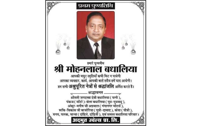 भावभीनी श्रद्धांजलि - जयपुर - 20.10.2020