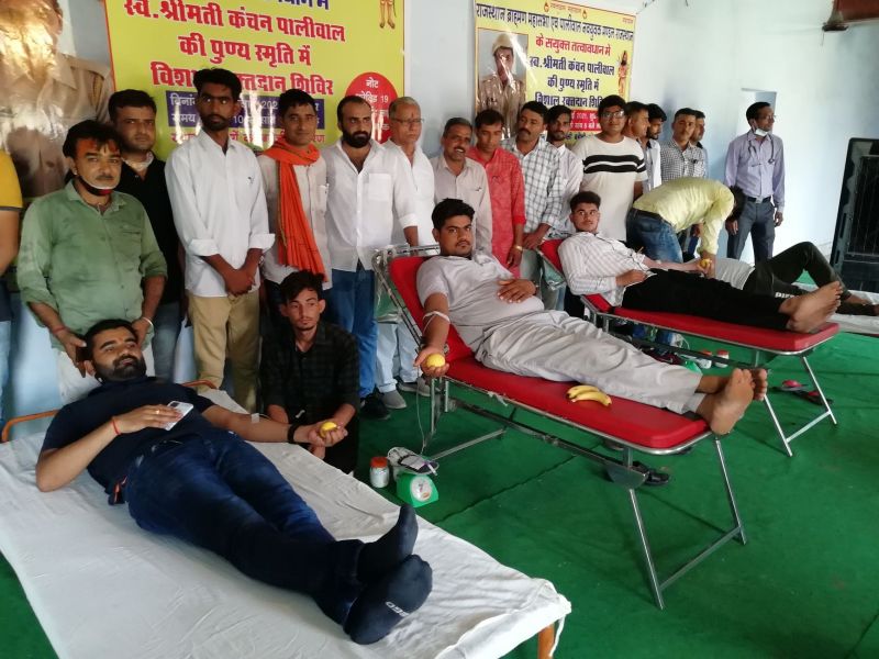 पोकरण. राजस्थान ब्राह्मण महासभा एवं पालीवाल नवयुवक मंडल राजस्थान के संयुक्त तत्वावधान में महिला पुलिस कांस्टेबल कंचन पालीवाल की स्मृति में शुक्रवार को कस्बे के व्यासों की बगेची में विशाल रक्तदान शिविर आयोजित किया गया, जिसमें 107 जनों ने स्वैच्छिक रक्तदान किया। जिन्हें महासभा व नवयुवक मंडल की ओर से प्रशस्ति पत्र, स्मृति चिन्ह व एक-एक पौधा देकर सम्मानित किया गया। नगरपालिका अध्यक्ष मनीष पुरोहित के मुख्य आतिथ्य, पुलिस उपाधीक्षक मोटाराम गोदारा की अध्यक्षता, जिला उद्योग केन्द्र के महाप्रबंधक हरीश श्रीमाली, पालीवाल नवयुवक मंडल के प्रदेशाध्यक्ष मुकेश पालीवाल, राजस्थान ब्राह्मण महासभा के अध्यक्ष व पार्षद नारायण रंगा, समाजसेवी महेन्द्र व्यास, पार्षद दिनेश व्यास, जितेन्द्रदयाल बोहरा, राजेन्द्रसिंह चंपावत, फलोदी के किसान नेता रामचंद्र पालीवाल के विशिष्ट आतिथ्य में आयोजित शिविर के शुभारंभ समारोह ने स्व. कंचन पालीवाल की तस्वीर पर माल्यार्पण कर शिविर की शुरुआत की गई। इस मौके पर संबोधित करते हुए मुख्य अतिथि मनीष पुरोहित ने कहा कि रक्तदान महादान है तथा रक्तदान के दौरान दी गई रक्त की एक बूंद किसी व्यक्ति के जीवन को बचा सकती है। उन्होंने सभी रक्तदाताओं व शिविर के आयोजकों को बधाई देते हुए शुभकामनाएं दी। नवयुवक मंडल के प्रदेशाध्यक्ष पालीवाल ने सभी मेहमानों, रक्तदाताओं का स्वागत करते हुए आभार जताया। पार्षद रंगा ने कहा कि रक्तदाता सबसे बड़ा दानी व रक्तवीर है, जो किसी को जीवनदान दे सकता है। समाजसेवी व्यास ने स्व.कंचन को अपनी श्रद्धांजलि अर्पित करते हुए उनकी आत्मा की शांति के लिए प्रार्थना की तथा ररक्तदाताओं को धन्यवाद दिया। रक्त संग्रहण के लिए जोधपुुर से आई अंबिका रक्त बैंक के चिकित्साधिकारी डॉ.राकेश गहलोत व देवेन्द्र गुर्जर ने रक्तदान से होने वाले स्वास्थ्य लाभ के बारे में जानकारी दी। समारोह की अध्यक्षता करते हुए उपाधीक्षक गोदारा ने पुलिस कांस्टेबल कंचन पालीवाल की स्मृति में रक्तदान शिविर आयोजित करने पर आयोजकों व रक्तदाताओं की हौसला अफजाई की। कार्यक्रम में स्व.कंचन के पति पुलिस कांस्टेबल मोहन पालीवाल ने सभी अतिथियों, रक्तदाताओं व विशेष सहयोगकर्ता हेमंत पालीवाल, भैरुलाल, कैलाश, लीलाधर, सत्यनारायण, घासीराम, डॉ.श्याम, गजेन्द्र, ललित पालीवाल, राजेश वैष्णव, पंकज सैनी आदि का आभार जताया। मोहन पालीवाल ने अपनी पत्नी की स्मृति में चैन पब्लिक गोशाला में गोवंश के लिए एक ट्रक चारा भी डलवाया गया।