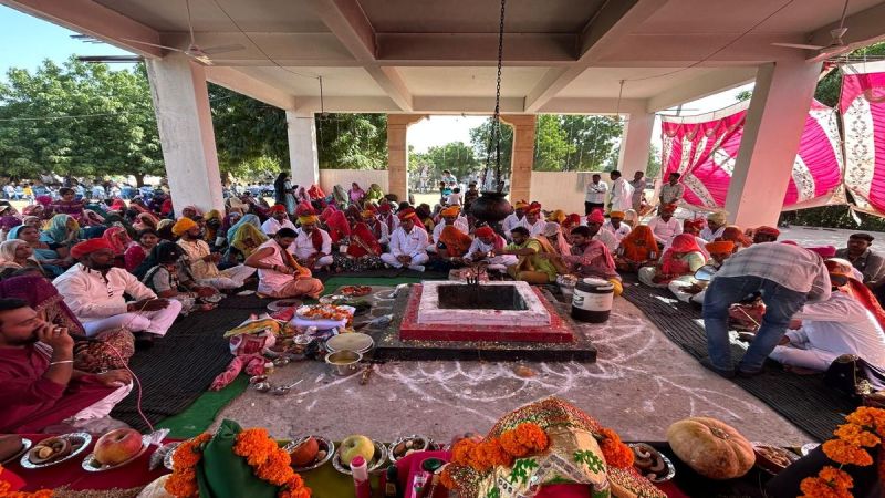 रामदेवरा गांव में मंगलवार को कार्तिक शुक्ल पक्ष एकादशी के अवसर पर गुजरात से आए मारू बंजारा समाज के लोगों ने गांव के रुणीचा कुआं पर यज्ञ का आयोजन किया। इस यज्ञ में गुजरात से मारू बंजारा समाज के 24 जोड़ों को पंडितो ने वैदिक मंत्रों के साथ आहुतियां दिलाई। वहीं रात्रि में बाबा का जागरण आयोजित किया गया। गांव में स्थित रुणीचा कुआं पर मंगलवार की सुबह चिलाय माता मंदिर के प्रांगण में इस यज्ञ आयोजन किया गया। मंगलवार को कार्तिक शुक्ल पक्ष की एकादशी के चलते श्रद्धालुओं की भीड़ बाबा रामदेव की समाधि के दर्शन को उमड़ पड़ी। इस अवसर पर गुजरात से सैकड़ों लोगों के दल बाबा रामदेव समाधि दर्शन के लिए रामदेवरा आए। गुजरात से आए मारू बंजारा समाज लोगों ने भी बाबा की समाधि के दर्शन कर देश में अमन चैन की खुशहाली की प्रार्थना की। इस दौरान लाला पंछी, विशनाराम, रमेश फोजा, नारायणसिंह, पिरा हमीर सहित गुजरत से आए मारू बंजारा समाज के सैकड़ों लोग उपस्थित रहे।