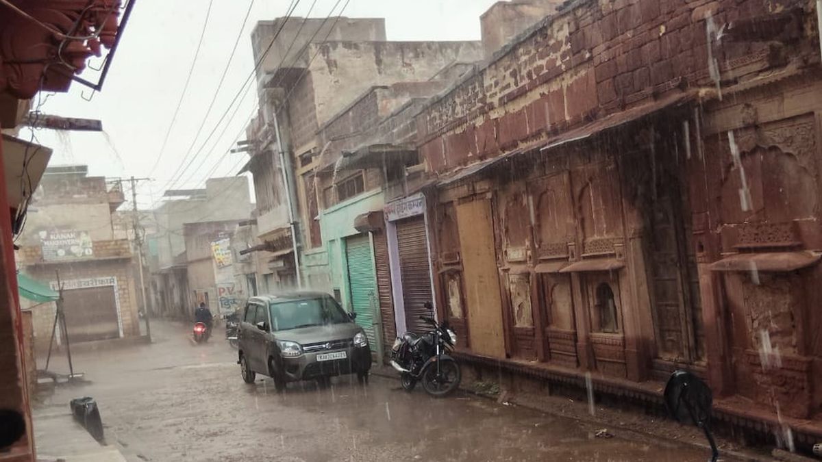 पोकरण क्षेत्र में गत कई दिनों से चल रहे गर्मी व उमस के दौर के बाद मंगलवार को दोपहर मौसम में बदलाव आया और तेज बारिश का दौर चला। गत कई दिनों से गर्मी व उमस का दौर चल रहा था। जिससे आमजन का बेहाल हो रहा था। गत दो-तीन दिनों से आसमान में बादलों की आवाजाही भी हो रही थी। मंगलवार को दोपहर करीब 3 बजे आसमान में काली घनघोर घटाएं छा गई। करीब 3.15 बजे तेज बौछारों के साथ बारिश का दौर शुरू हुआ। रुक-रुककर करीब 4.30 बजे तक बारिश होती रही। करीब एक घंटे रुकने के बाद 5.30 बजे फिर बारिश का दौर शुरू हुआ। तूफानी हवाओं के साथ करीब एक घंटे तक बारिश होती रही। बारिश से छतों से परनाले बहने लगे और सड़कों पर पानी जमा हो गया। बारिश से मौसम ठंडा व सुहावना हो गया। जिससे गर्मी व उमस से त्रस्त लोगों को राहत मिली। देर रात तक भी रुक-रुककर बूंदाबांदी व रिमझिम फुहारों का दौर जारी था।