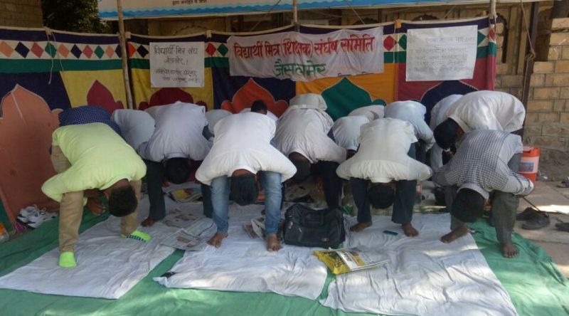 संघ के उपाध्यक्ष दिलीप शेरा ने बताया कि पंचायत सहायक भर्ती का दूसरा राउंड 23 से शुरू हो चुका है और 3 अक्टूबर को इसके आवेदन की अंतिम तारीख भी आने वाली है, लेकिन जैसलमेर में जिला स्तर पर पूर्व में दी गयी परिवेदनाओं का निस्तारण नहीं होने के कारण इस प्रक्रिया में भी अनियमितता की आशंका है। विद्यार्थी मित्रों का प्रतिनिधि मंडल पूर्व सरपंच वीरसिंह तेजमालता व किसान नेता हरिराम कड़वासरा की अगुवाई में जिला कलेक्टर से मिला और समस्याओं के समाधान की मांग की। कलक्टर कैलाशचंद मीना ने परिवेदनाओं के निस्तारण के लिए जिला कमेटी बिठाकर निस्तारण का भरोसा दिलाया। इस दौरान तरुनसिंह, हबीबखां, शिवदान, सोनाराम, गोपालदान, खीमसिंहा, अर्जूनसिंह, राजूसिंह, सुजाराम, लीलाराम, हनुमानसिंह, तनसिंह, देरावरसिंह, अशोक कुमार आदि ने मुर्गा बनकर विरोध प्रदर्शन किया।