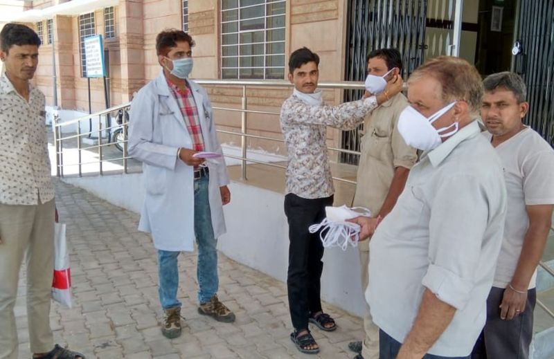 जैसलमेर /भीखोड़ाई. कोरोना वायरस के संक्रमण से बचाव के लिए भीखोड़ाई पीएचसी प्रभारी डॉ. सुरेश कुमार को चार सौ मास्क सौंपे।