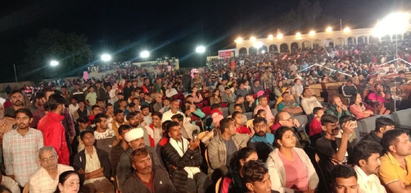 जैसलमेर के शहीद पूनमसिंह स्टेडियम में गुरुवार सुबह मरु महोत्सव के दिन के कार्यक्रमों में गर्मी और कई कारणों से दर्शकों की कमी की कसर रात के सांस्कृतिक कार्यक्रम व सेलिब्रिटी नाइट में पूरी हो गई। हजारों दर्शकों से खचाखच भरे पूनम स्टेडियम में मरु लोकगीत-संगीत को देश और दुनिया में ख्याति दिलाने वाले कलाकारों के साथ मौजूदा समय में राम आएंगे तो अंगना सजाऊंगी...गीत गाने वाली कलाकार ने ऐसा रंग जमाया कि, दर्शक वाह-वाह कर उठे। सायंकालीन कार्यक्रम की शुरुआत के मौके पर पदमश्री सम्मान से सम्मानित लोक कलाकार अनवर खां और मशहूर कलाकार पेपे खां का जिला न्यायाधीश पूरण कुमार शर्मा, जिला कलक्टर प्रतापसिंह और पुलिस अधीक्षक सुधीर चौधरी ने सम्मान किया। बाद में दोनों लोक कलाकारों ने माड्धरा की मिट्टी से जुड़ी पेशकशों से समां बांध दिया। दर्शकों खासकर जैसलमेर से बाहरी इलाकों के लोगों ने उनकी प्रस्तुतियों को खूब सराहा। इसके बाद स्वाति मिश्रा ने राम आएंगे तो अंगना सजाऊंगी...गीत सहित अन्य भक्तिपूर्ण रचनाओं से श्रोताओं का दिल जीत लिया। हल्की गुलाबी सर्दी के बीच अपने-अपने स्थानों पर जमे लोगों ने स्थानीय स्तर से बॉलीवुड तक पर छाप छोड़ने वाले कलाकार मम्मे खां की प्रस्तुतियों का जमकर लुत्फ उठाया। इस मौके पर पूनम स्टेडियम के सारे पैवेलियन और सभी दर्शक दीर्घाएं खचाखच भरी हुई थी। प्रशासन के साथ सैन्य बलों के लोग भी बड़ी तादाद में परिवारजनों के साथ सुरमयी सांझ का आनंद उठाने पहुंचे। कार्यक्रम का संचालन विजय बल्लाणी, किशोर राजपुरोहित और प्रीति भाटिया ने किया।