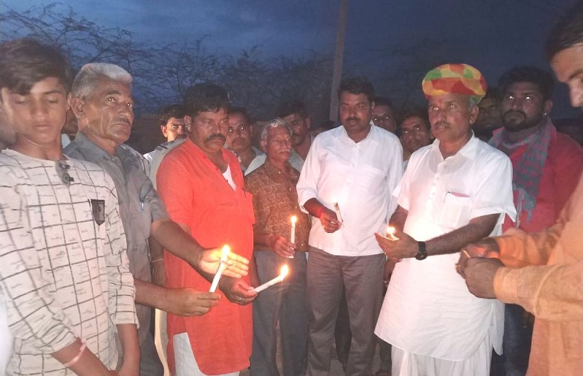 जैसलमेर. लाठी गांव में शनिवार की रात कैण्डल मार्च निकालकर बाड़मेर के गिराब थानांतर्गत उनरोड़ गांव में सात वर्षीय बालिका के साथ दुष्कर्म कर उसकी हत्या कर देने के आरोपित को फांसी की सजा दिलाने की मांग की। क्षेत्रीय विधायक शैतानसिंह राठौड़, विश्व हिन्दू परिषद के जिला उपाध्यक्ष हनुमान चौधरी के नेतृत्व में गांव में एक कैण्डल मार्च निकाला गया, जो गांव के मुख्य मार्गों से होते हुए चौराहे पर पहुंचा। यहां आयोजित श्रद्धांजलि सभा को संबोधित करते हुए विधायक राठौड़, जिला उपाध्यक्ष चौधरी ने उनरोड़ में हुई घटना की निंदा करते हुए बालिका को श्रद्धांजलि दी तथा आरोपित को फांसी की सजा दिलाने की मांग की। इस अवसर पर सरपंच ललिता पालीवाल, ग्राम विकास अधिकारी फतेहलाल पालीवाल, बाड़मेर विभाग सेवा प्रमुख चिरंजीलाल, हिन्दू जागरण मंच के जिला संयोजक रावलसिंह केलावा, बाबूलाल विश्रोई, मुकेश पालीवाल, खेताराम लीलड़, हीरसिंह झाला, सत्यनारायण पालीवाल, सुंदरलाल दर्जी, तनसुख देवड़ा, मिथुन, बाबूसिंह, बागाराम मेघवाल सहित लोग उपस्थित थे।