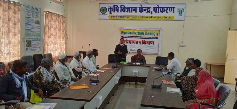 पोकरण. कृषि विज्ञान केन्द्र के सभागार में शुक्रवार को बकरियों में वैज्ञानिक आहार प्रबंधन विषय पर प्रशिक्षण शिविर आयोजित किया गया, जिसमें 25 किसानों व पशुपालकों ने भाग लिया। वरिष्ठ वैज्ञानिक एवं अध्यक्ष डॉ.बलवीरसिंह ने बताया कि बकरी पालन वर्षभर निरंतर चलते रहने वाला उच्च लाभ प्रदाय करने वाला व्यवसाय है। बकरियों से हमें मांस, दूध एवं खाद प्राप्त होता है। उन्होंने बताया कि बकरियों के संतुलित आहार में कार्बोहाइड्रेट, प्रोटीन, वसा, खनिज लवण तथा विटामिन जैसे प्रमुख अवयव शारीरक आयु के अनुसार आवश्यक मात्रा मे होने चाहिए, ताकि बकरियों के उत्पादन, प्रजनन क्षमता एवं रोग प्रतिरोधक क्षमता पर प्रभाव नहीं पड़े। पशुपालन वैज्ञानिक एवं प्रशिक्षण प्रभारी डॉ.रामनिवास ढाका ने बकरियों के वैज्ञानिक आहार प्रबंधन पर चर्चा करते हुए बताया कि बकरी को प्रतिदिन उसके भार का 3.5 प्रतिशत शुष्क आहार खिलाना चाहिए तथा एक वयस्क बकरी को प्रतिदिन 1.3 किलो हरा चारा, 500 ग्राम से एक किलो भूसा तथा 150 ग्राम से 400 ग्राम तक दाना और 10 से 20 ग्राम खनिज लवण खिलाना चाहिए। साथ ही सर्दियों में बकरियों को गुनगुना पानी कम से कम दिन मे तीन बार पिलाना चाहिए। उन्होंने अधिक दूध व मांस उत्पादन, गाभिन बकरी तथा प्रजनन के काम आने वाले बकरों आदि को उनके वजन व उत्पादन के आधार पर संतुलित दाना-चारा तथा पोषक तत्व के साथ उचित मात्रा में खनिज लवण नियमित रूप से देने की बात कही। प्रशिक्षण में बकरी आहार प्रबंधन की पद्धतियां, टीथरिंग चराई, गहन चराई, चराई विहीन पूर्णत: घर पर बांधकर खिलाना, अर्घ गहन एवं बकरी पोषण से संबंधित सावधानियों की जानकारी दी। बकरियों के ब्याने के तुरंत बाद गुड़ एवं अजवाईन को पानी में घोलकर अगले चार दिनों तक देने से बकरियों में ब्याने उपरांत आने वाली सभी समस्याओं से निजात मिल जाती है। केंद्र के सस्य वैज्ञानिक डॉ.केजी व्यास ने बकरी पालन के आहार में हरे चारे के महत्व पर चर्चा कर बताया कि खेजड़ी की लूंग, शहतूत, सहजन, नीम, अरडु व बबूल आदि को खिलाने से बकरियों का स्वास्थ्य उत्तम रहता है। अधिक प्रोटीन युक्त दलहनी फसलें जैसे बरसीम, लूसर्न, मटर, लोबिया, ग्वार, स्टाइलों व अन्य नैपियर एवं फसलें जैसे ज्वार, मक्का, बाजरा, मक्काचरी, पैरा, घास, जई व मानसूनी घासें बकरियों के लिए उपयुक्त होती है।