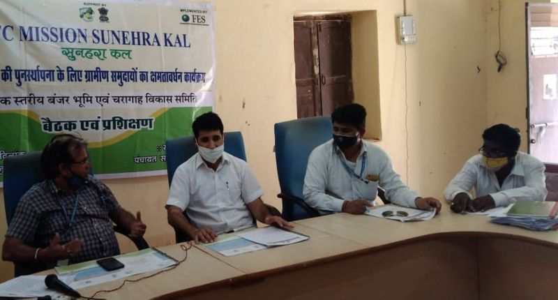पोकरण. कस्बे के पंचायत समिति सांकड़ा सभागार में बुधवार को आईटीसी मिशन सुनहरा कल, राजस्थान सरकार व फाउंडेशन फॉर इकोलॉजिकल सिक्युरिटी की ओर से प्रधान भगवतसिंह तंवर की अध्यक्षता में क्षमतावर्धन कार्यक्रम का आयोजन किया गया। ब्लॉक स्तरीय बैठक व प्रशिक्षण के दौरान प्रधान तंवर ने संबोधित करते हुए कहा कि बंजर भूमि, चारागाह विकास सहित शामलात से जुड़े सभी मुद्दोंं पर जनप्रतिनिधियों व अधिकारियों को आगे आकर कार्य करने की जरुरत है, ताकि क्षेत्र का विकास हो सके। उन्होंने ब्लॉक क्षेत्र में ओरण, गोचर, चारागाह की भूमि के लिए प्रत्येक राजस्व गांव में चारागाह विकास कमेटी का गठन करने की बात कही। शामलात के संसाधनों के संरक्षण के लिए समिति की ओर से हरसंभव सहयोग किया जाएगा। उन्होंने सरपंचों को बंजर भूमि व चारागाह कार्यक्रम में सक्रीय भागीदारी सुनिश्चित करने की बात कही। साथ ही पंचायत स्तर पर मनरेगा के तहत चारागाह में प्रस्ताव तैयार करने का आह्वान किया। कार्यक्रम के दौरान ग्राम पंचायत स्तर पर कमेटियों के सदस्यों को प्रशिक्षण दिया गया। सहायक विकास अधिकारी भीमाराम वानर ने मॉडल चारागाह विकसित करने की जरुरत बताई। एफईएस जिला सममन्वयक मगाराम कड़ेला ने शामलात भूमि पर पंचायत के अधिकार, शामलात संसाधनों की सुरक्षा, प्रबंधन की विस्तार से जानकारी दी। उन्होंने चारागाह के विकास के अंतर्गत खाई खुदाई, पौधरोपण, नाडी व टांका निर्माण, घास व चारा लगाने के कार्य के बारे में बताया। इस मौके पर सहायक विकास अधिकारी भागीरथ पंवार, मनोजकुमार, मगनलाल सहित ग्राम विकास अधिकारी, सरपंच, सहायक अभियंता आदि उपस्थित रहे।