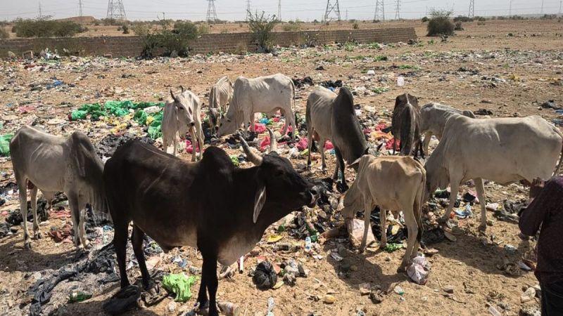 जैसलमेर जिला मुख्यालय से करीब 6 किलोमीटर की दूरी पर स्थित नगरपरिषद का डम्पिंग यार्ड जरूरी व्यवस्थाओं के अभाव में एक तरफ गोवंश के लिए जानलेवा स्थान बना हुआ है तो दूसरी ओर क्षेत्र में बसने वाली आबादी के लिए सांस का संकट। शहर भर का कूड़ा-करकट और मृत पशु तक यहां लाकर डाल दिए जाते हैं। बड़ाबाग जैसी पुरानी विरासत क्षेत्र में यह डम्पिंग यार्ड जिम्मेदारों की अनदेखी की ज्वलंत मिसाल बन गया है। जहां तक नजर जाती है, बेशुमार प्लास्टिक, मृत पशुओं के शव, खाद्य पदार्थों का अपशिष्ट ही दिखता है। दुर्गंध इतनी तीक्ष्ण कि, सांस लेना भी मुश्किल होता है। यहां दिनभर गोवंश मंडराता रहता है। वे प्लास्टिक, होटलों आदि का बचा हुआ बासी भोजन और मृत पशुओं के अवशेष खाकर बीमार हो रहे हैं और काल के गाल में भी समा रहे हैं।