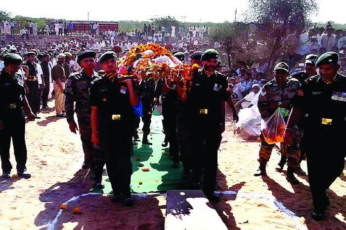असम के तनसुकिया जिले में शनिवार अलसुबह आतंकी हमले में शहीद राजमथाई के लोंगासर निवासी नरपतसिंह राठौड़ का सोमवार को पूर्ण सैनिक व राजकीय सम्मान के साथ अंतिम संस्कार किया गया। उनके आठ वर्षीय पुत्र रावलसिंह ने उन्हें मुखाग्नि दी।