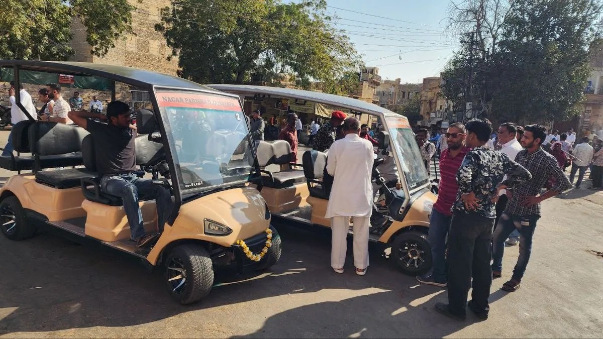जैसलमेर आने वाले देशी-विदेशी पर्यटक अब विश्वप्रसिद्ध सोनार दुर्ग के चारों तरफ का नजारा शोर और प्रदूषण से रहित गोल्फ कार्ट में बैठकर कर सकेंगे। शिव मार्ग के अंतिम छोर से इस सेवा का रविवार को आगाज किया गया। अनौपचारिक कार्यक्रम के बाद जैसलमेर विधायक छोटूसिंह भाटी और जिला कलक्टर प्रताप सिंह ने हरी झंडी दिखा कर गोल्फ कार्ट को रवाना किया। किले के चारों तरफ ध्वनि और वायु प्रदूषण व यातायात में सुधार के लिए इसे नगरपरिषद का एक और नवाचार माना जा रहा है। शुरुआत में संबंधित ठेकेदार कम्पनी की तरफ से 10 गोल्फ कार्ट लगाई गई है, आने वाले समय में जरूरत बढऩे पर इनकी संख्या को 40 या उससे भी ज्यादा किया जा सकेगा। गौरतलब है कि जिस तरह से गड़ीसर सरोवर में नगरपरिषद की तरफ से नौकायन का ठेका किया गया है, उसी तर्ज पर गोल्फ कार्ट की व्यवस्था की गई है। नगरपरिषद आयुक्त लजपालसिंह सोढ़ा ने बताया कि गोल्फ कार्ट का संचालन किए जाने से नगरपरिषद को 5 लाख रुपए की सालाना आय होगी।