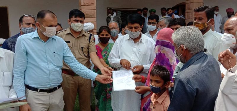 पोकरण. राजस्थान सरकार के अल्पसंख्यक मामलात, वक्फ एवं जन अभियोग निराकरण विभाग के मंत्री व पोकरण विधायक शाले मोहम्मद ने कहा कि जरुरतमंद व पीडि़त की मदद के लिए सरकार हर समय तैयार है। प्रदेश की जनता की समस्याओं के निस्तारण व विकास कार्यों को लेकर सरकार शिद्दत के साथ कार्य कर रही है। उन्होंने रविवार को अपने निवास फतेह मंजिल में कोरोना से हुई लोगों की मौत के बाद उनके परिजनों को संवेदना पत्र सुपुर्द करते हुए कहा कि देश में कोरोना की दूसरी लहर का प्रकोप अधिक रहा। सीमावर्ती जिले में भी कई परिवारों ने अपने सदस्यों को खो दिया। उन्होंने बताया कि कोरोना से व्यक्ति की मौैत के बाद सरकार की ओर से संवेदना जताते हुए परिवार को एक-एक लाख रुपए की सहायता राशि दी जा रही है। इसी केे अंतर्गत पोकरण क्षेत्र में भी मृतकों के परिजनों के बैंक खातों में राशि जमा करवा दी गई है तथा उनके परिवारोंं को संवेदना पत्र सुपुर्द किए जा रहे है। उन्होंने रविवार को संवेदना पत्र सुपुर्द कर परिवार को हरसंभव सहयोग का भरोसा दिलाया। उन्होंने बताया कि कोरोना की तीसरी लहर की आशंका जताई जा रही है। ऐसे में प्रत्येक व्यक्ति को अनुकूल व्यवहार करते हुए सरकार की ओर से जारी गाइडलाइन की पालना करनी चाहिए, ताकि कोरोना के प्रकोप से बचा जा सके।