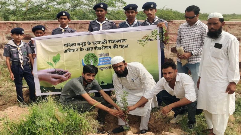 राजस्थान पत्रिका की ओर से चलाए जा रहे हरयाळो राजस्थान अभियान के अंतर्गत मंगलवार को कस्बे के निकटवर्ती सांकड़ा फांटा के पास स्थित राजकीय प्राथमिक विद्यालय हाजीपुरा में जमीअत यूथ क्लब के स्काउट्स के तत्वावधान में पौधरोपण किया गया। जमीअत यूथ क्लब के जिला संयोजक हाफिज अकबर मेहमूदी ने बताया कि स्काउट व पत्रिका के तत्वावधान में क्षेत्र में पौधरोपण किया जा रहा है। मंगलवार को राजकीय प्राथमिक विद्यालय हाजीपुरा में राजस्थान पत्रिका के हरयाळो राजस्थान कार्यक्रम के तहत मास्टर एहसानखां, अब्दुल सत्तार, सामाजिक कार्यकर्ता मजीद मेहर, एम.अकबर मेहमूदी, हाफिज उबेदुल्ला आदि की ओर से पौधरोपण किया गया। जिला संयोजक हाफिज अकबर मेहमूदी ने पौधरोपण के महत्व पर प्रकाश डाला और मानसून सीजन में अधिकाधिक संख्या में पौधे लगाकर पर्यावरण संरक्षण करने का आह्वान किया। एहसान खां ने पत्रिका के अभियानों की सराहना करते हुए अमृतम् जलम् व हरयाळो राजस्थान जैसे कार्यक्रमों से प्रेरणा लेने की बात कही। स्काउट्स व विद्यार्थियों ने पौधों के संरक्षण व प्रतिदिन पानी पिलाने की जिम्मेवारी ली। अभियान के संबंध में दीपक सोनी ने विस्तार से जानकारी दी व धन्यवाद ज्ञापित किया।