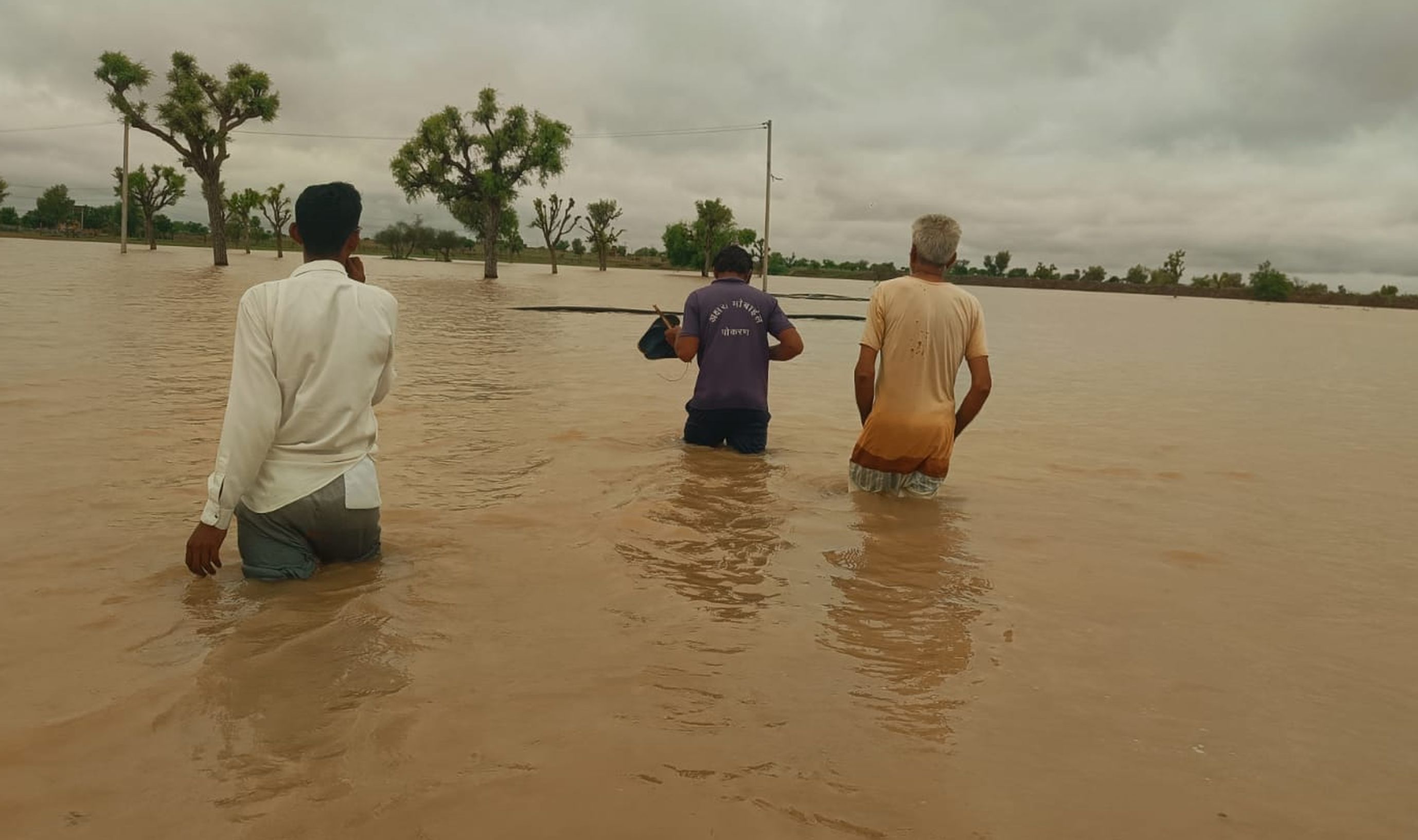 ग्रामीण क्षेत्रों में शनिवार को हुई तेज बारिश के कारण कई गांवों में खड़ीन लबालब हो गए। नदी-नालों से बहकर और खड़ीनों से ओवरफ्लो हुआ पानी कई ढाणियों के आसपास जमा हो गया। जिससे ग्रामीणों को परेशानी हो रही है। शनिवार को ग्रामीण क्षेत्रों में करीब दो घंटे तक तेज मूसलाधार बारिश का दौर चला। जिससे तालाबों, नाडियों, खड़ीनों में पानी की अच्छी आवक हुई है। ग्राम पंचायत माड़वा, रातडिय़ा, झलारिया क्षेत्र में कई जगहों पर गांवों व ढाणियों के आसपास पानी जमा हो गया। विशेष रूप से माड़वा गांव की कई ढाणियां जलमग्न हो गई। माड़वा गांव के हसनखां की ढाणी, सरपंच फजलदीन की ढाणी, भीलों की ढाणियों के चारों तरफ बारिश का पानी जमा हो जाने से उनका घरों से बाहर निकलना मुश्किल हो रहा है। बल्लूसिंह की ढाणी से पनजी का बेरा, तेलीवाड़ा, सोढ़ों की ढाणियों व गांव से पश्चिम-दक्षिण दिशा से बहकर आने वाला पानी इन खड़ीनों में भरने के साथ इन ढाणियों के आसपास फैल जाता है। यह पानी आगे गुड्डी रिण में जाकर गिरता है। गत कई दिनों से निकासी के मार्ग बंद होने के कारण खड़ीनों व इन ढाणियों के चारों तरफ पानी जमा हो गया है। इसके अलावा पानी के तेज बहाव के कारण देवलपुरा बेलदारों की ढाणी कच्चा सड़क मार्ग टूट गया है। जिससे देवलपुरा से बेलदारों की ढाणी का आवागमन बंद पड़ा है। पोकरण से जाने वाले ग्रामीणों को माड़वा गांव से होकर जाना पड़ रहा है।