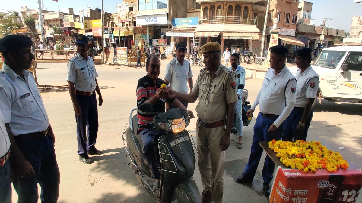 पोकरण कस्बे में यातायात व्यवस्था सुधारने को लेकर यातायात पुलिस की ओर से अब तैयारी शुरू कर दी गई है। विशेष रूप से बिना हेलमेट लगाकर दुपहिया वाहन चलाने वालों के विरुद्ध कार्रवाई की जाएगी। इसके लिए वाहन चालकों को समझाइश कर नियमों की जानकारी दी जा रही है। यातायात पुलिस प्रभारी सहायक उपनिरीक्षक सवाईसिंह तंवर ने बताया कि पुलिस अधीक्षक सुधीर चौधरी, अतिरिक्त पुलिस अधीक्षक प्रवीण सैन व वृताधिकारी भवानीसिंह राठौड़ की ओर से कस्बे में यातायात व्यवस्था को सुदृढ़ करने को लेकर निर्देशित किया गया है। विशेष रूप से दुपहिया वाहनोंं की बढ़ती संख्या, हादसों पर अंकुश लगाने को लेकर मोटरसाइकिल चालकों को हेलमेट लगाने के लिए पाबंद किया जा रहा है। उन्होंने बताया कि फिलहाल वाहन चालकों को समझाइश की जा रही है और एक-दो दिन में वृहद स्तर पर अभियान चलाकर चालान काटने की कार्रवाई की जाएगी। उन्होंने बताया कि शनिवार को कस्बे के मुख्य चौराहे, जैसलमेर रोड, जोधपुर रोड सहित मुख्य मार्गों पर नाकाबंदी कर वाहन चालकों को यातायात नियमों की जानकारी देते हुए उनका पालन करने के लिए समझाइश की गई। इस दौरान उन्हें पुष्प भी भेंट किए गए। दुपहिया वाहन चालकों को पुष्प देकर रविवार से आवश्यक रूप से हेलमेट लगाकर ही मोटरसाइकिल चलाने का संदेश दिया गया। उन्होंने हेलमेट लगाने से होने वाली सुरक्षा के बारे में बताया। इसके साथ ही बिना हेलमेट कटने वाले चालान व मोटरयान अधिनियम के बारे में विस्तारपूर्वक जानकारी दी।