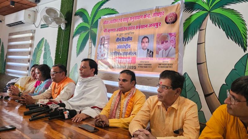 स्वर्णनगरी में आगामी 4 से 6 अक्टूबर की अवधि में अंतरराष्ट्रीय ज्योतिष महासम्मेलन का आयोजन किया जाएगा। सीता ज्योतिष एवं वास्तु अनुसंधान केंद्र, जोधपुर एवं श्रीकृष्णा ज्योतिष शोध संस्थान, जयपुर की ओर से संयुक्त रूप से आयोजित होने वाले तीन दिनी कार्यक्रम में विख्यात ज्योतिषाचार्यों का सम्मान किया जाएगा और ज्योतिष की विधा में पारंगत विद्वान आपस में सूत्रों का आदान-प्रदान करेंगे। यह जानकारी आयोजन से जुड़े स्वामी सौरभ राघवेंद्र आचार्य महाराज ने शुक्रवार को जैसलमेर में आयोजित पत्रकार वार्ता में दी। उन्होंने बताया कि सम्मेलन जैसलमेर के जैन उत्कर्ष भवन में आयोजित किया जाएगा। शुक्रवार को कार्यक्रम से जुड़े पोस्टर का विमोचन किया गया, जिसमें आयोजन से जुड़े अन्य ज्योतिषाचार्य भी मौजूद रहे।