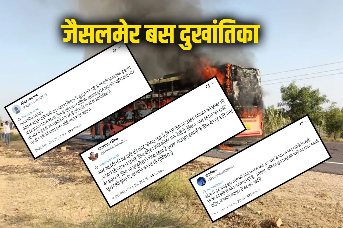 वहीं, इस हादसे को लेकर सोशल मीडिया पर लोगों का गुस्सा भड़क गया है। लोग सरकारी लापरवाही, पुरानी बसों की अनदेखी और सुरक्षा मानकों की अनदेखी पर सवाल उठ रहे हैं। एक यूजर संजय धरीवाल जैन ने सवाल उठाया कि क्या सरकारी तंत्र ऐसे भयानक हादसों को रोक नहीं सकती? ठसाठस भरी बसों पर रोक लगाओ।