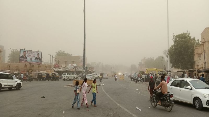 धोरों की धरती जैसलमेर में प्रचंड गर्मी का सितम इस बार थमने का नाम नहीं ले रहा है। बुधवार को दिन में आकाश धूल की गर्द भी छाई रही, शाम के समय अंधड़ भी आया, इसके बावजूद भीषण गर्मी और उमस ने लोगों को चैन से नहीं बैठने दिया। वे पसीने में ही तरबतर होते रहे। मौसम विभाग ने बुधवार को अधिकतम तापमान 44.2 डिग्री दर्ज किया है और न्यूनतम तापमान 33.0 डिग्री रहा। इस तरह से बीकानेर, फलोदी और बाड़मेर के बाद जैसलमेर चौथा सबसे गर्म शहर रहा। गत मंगलवार को अधिकतम तापमान 45.4 व न्यूनतम 33.1 डिग्री रहा था। दिन में भट्टी की तरह तपते शहर में बहुत कम संख्या में ही लोगों की आवाजाही देखी गई। गर्मी का सितम इस कदर है कि देर रात तक हवा शीतल नहीं होती और वह लू का ही अहसास करवाती है।