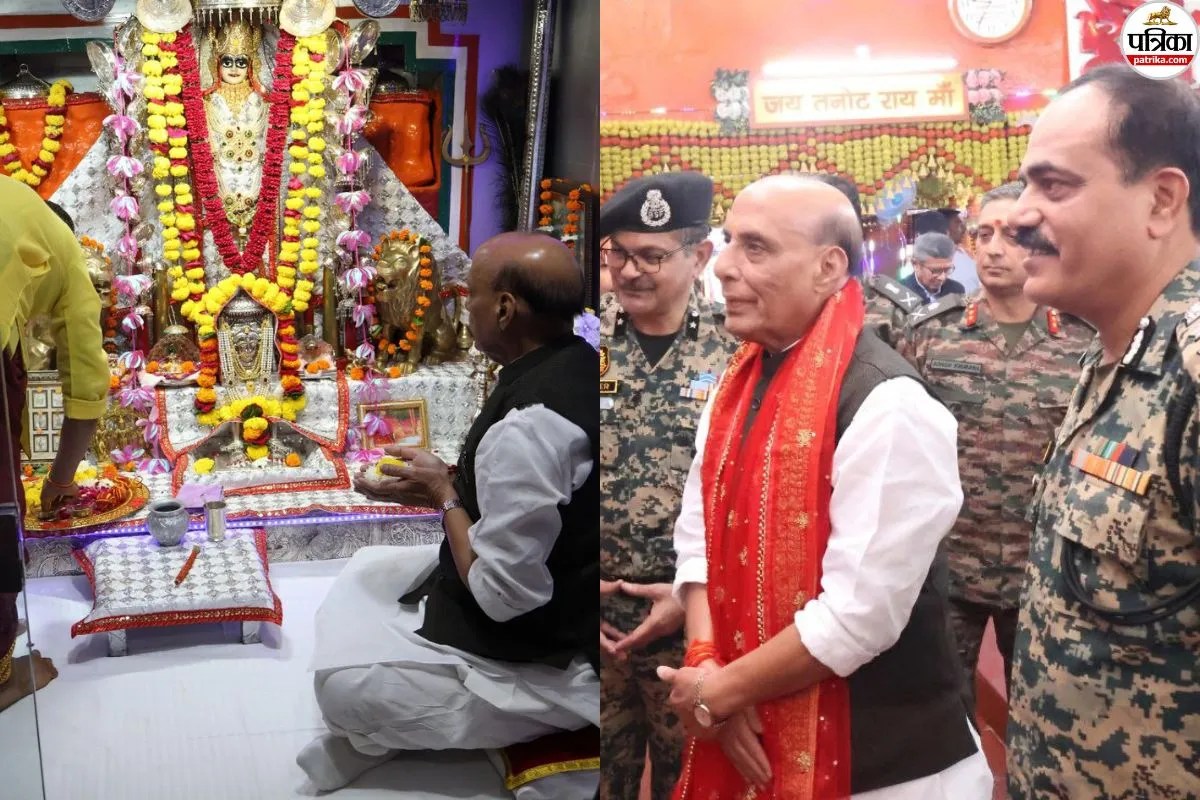 जैसलमेर: रक्षा मंत्री राजनाथ सिंह ने शुक्रवार को अपने दो दिवसीय जैसलमेर प्रवास के दौरान विश्वविख्यात तनोट राय माता मंदिर पहुंचकर पूजा-अर्चना की। इस अवसर पर उन्होंने सीमा सुरक्षा बल के शौर्य, निष्ठा और देश सेवा के प्रति समर्पण की सराहना की।