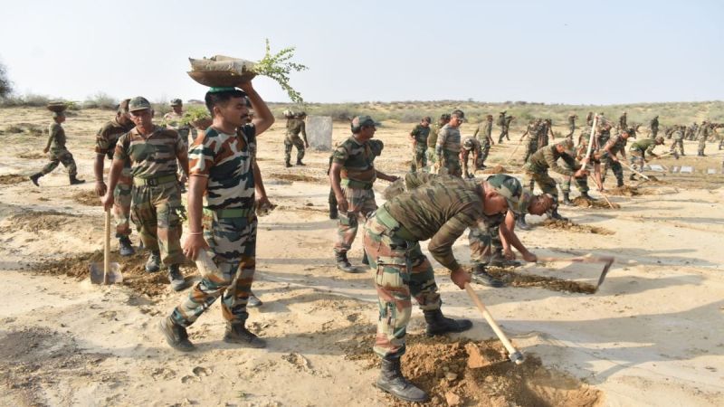 जिले के रेतीले इलाकों की काया पलटी हुई नजर आ रही है। जहां कोई पेड़ पौधा नजर नहीं आ रहा था। वहां पर अब हरियाली देखने को मिल रही है। ऐसे में दुर्गम स्थलों को हरा भरा बनाने का कार्य मोहनगढ स्थित 128वीं पैदल वाहिनी (प्रा.से.) पर्यावरण राजरिफ की ओर से किया जा रहा है। मोहनगढ क्षेत्र में इन दिनों पर्यावरण एवं जल संरक्षण के क्षेत्र में कार्य किया जा रहा है। क्षेत्र को प्रादेशिक सेना की ओर से रेगिस्तान को हरा-भरा बनाया जा रहा है। क्षेत्र में बंजर भूमि व रेतीले टीलों पर पौधरोपण कर हरा भरा बनाया जा रहा है। 1997 से लेकर अब तक इस बटालियन ने मोहनगढ़ क्षेत्र के 22189 हैक्टेयर भूमि पर दो करोड छः लाख 31 हजार पौधे लगाए जा चुके है। पौधों के साथ ही सेवण घास, वेटिवर व सीड बॉल भी तैयार कर दुर्गल स्थलों पर डाली जा रही है। बटालियन को राष्ट्रीय स्तर, प्रदेश स्तर व जिला स्तर के पुरस्कार मिल चुके है। गत 22 सितम्बर 2024 को एक घंटे में 5 लाख 19 हजार 130 पौधे लगाकर एक साथ चार विश्व रिकोर्ड स्थापित किए है। 128वीं पैदल वाहिनी (प्रा.से.) पर्यावरण राज रिफ पर्यावरण संरक्षण एवं जल संरक्षण का कार्य कर रही है। इसके अलावा वन्य जीव संरक्षण का कार्य भी कर रही है। बटालियन के कमान अधिकारी कर्नल मोहन सिंह राठौड़ ने बताया कि जैसलमेर जिले में बटालियन की तीन कंपनियां अलग-अलग स्थानों पर क्षेत्र को हरा भरा बनाने का कार्य कर रही है। जिसमें ए कंपनी मोहनगढ़ क्षेत्र में पनोधर राय मंदिर क्षेत्र में कार्य कर रही है। बी कंपनी जैसलमेर मिलिट्री स्टेषन में पौधारोपण कार्य कर रही है। सी कंपनी राष्ट्रीय मरु उद्यान के सम क्षेत्र में पौधा रोपण, सेवण घास रोपण के साथ साथ गोडावण व वन्य जीव संरक्षण का कार्य भी कर रही है। पौधारोपण करने के बाद लगभग चार साल तक ईटीएफ पौधों की देखभाल करती है। उसके बाद संबंधित ग्राम पंचायत को पोधारोपण किए हुए जमीन सुपुर्द कर देते है। पौधों की जीवितता लगभग 82 प्रतिशत से अधिक है।