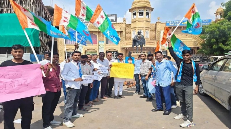 एनएसयूआइ संगठन जैसलमेर ने शनिवार को विरोध प्रदर्शन करते हुए मुख्यमंत्री भजनलाल शर्मा का पुतला फूंका। प्रदर्शन के दौरान कांग्रेस के वरिष्ठ नेताओं और एनएसयूआइ कार्यकर्ताओं ने मांग उठाई कि प्रदेशाध्यक्ष विनोद जाखड़ और गिरफ्तार कार्यकर्ताओं को शीघ्र रिहा किया जाए। कार्यकर्ताओं ने कहा कि 30 सितंबर को राजस्थान विश्वविद्यालय में आरएसएस का कार्यक्रम आयोजित किया गया, जिसका विरोध पहले ही किया गया था। उस समय एनएसयूआइ ने स्पष्ट कहा था कि शैक्षणिक संस्थानों में शिक्षा, पढ़ाई-लिखाई और छात्रहित से जुड़े कार्यक्रम होने चाहिए, किसी विशेष विचारधारा को थोपने की अनुमति नहीं दी जा सकती। इस विरोध के बाद प्रदेशाध्यक्ष विनोद जाखड़ और एनएसयूआइ कार्यकर्ताओं को गिरफ्तार किया गया, जिस पर अब संगठन ने नाराजगी जताई है।