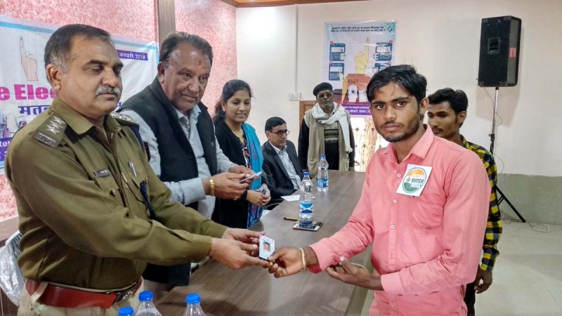 नोख. स्थानीय राजकीय उच्च माध्यमिक विद्यालय में गुरुवार को राष्ट्रीय मतदाता दिवस मनाया गया। बीएलओ विशालसिंह व दिनेशकुमार ने नवमतदाताओं को परिचय पत्र वितरित कर मतदान की शपथ दिलाई।