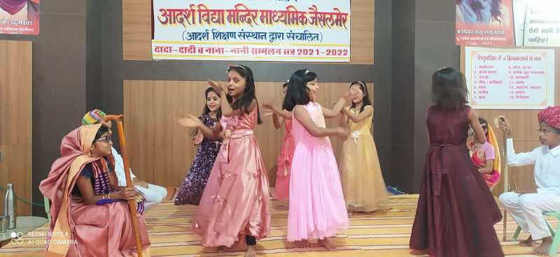 जैसलमेर. आदर्श शिक्षण संस्थान की ओर से संचालित आदर्श विद्या मंदिर माध्यमिक जैसलमेर में दादा-दादी व नाना-नानी सम्मेलन आयोजित किया गया। जिसमें मुख्य अतिथि राजकुमार बंसल शिश ुवाटिका प्रमुख जोधपुर प्रांत थे। कार्यक्रम के मुख्य वक्ता बृजमोहन रामदेव अध्यक्ष आदर्श शिक्षण संस्थान जैसलमेर, भंवरलाल कुमावत अध्यक्ष आदर्श शिक्षण संस्थान जैसलमेर थे। कार्यक्रम के अध्यक्ष सेवानिवृत्त कर्नल भीमसिंह भाटी ने दीप प्रज्वलन कर कार्यक्रम का आगाज किया। शिशु वाटिका की छात्राओं ने सांस्कृतिक कार्यक्रम की प्रस्तुति दी। माध्यमिक भाग के प्रधानाचार्य बीरमाराम ने अतिथियों का परिचय करवाया गया। राजकुमार बंसल की ओर से शिशु वाटिका की 12 व्यवस्थाओं की जानकारी करवाई गई। प्राथमिक भाग के प्रधानाचार्य दामोदर गर्ग ने सभी आगंतुक मेहमानों का आभार जताया। कार्यक्रम में आदर्श विद्या मंदिर भाटिया बगीची के प्रधानाचार्या गीता पंवार, खुईयाला विद्या मंदिर के प्रधानाचार्य द्वारकाराम जिला शिशु वाटिका प्रभारी और नगर में संचालित होने वाले चारों विद्या मंदिरों के सभी स्टाफ का सहयोग रहा। संचालन शिशुवाटिका प्रभारी नरेंद्रकुमार मेहरड़ा ने किया।
