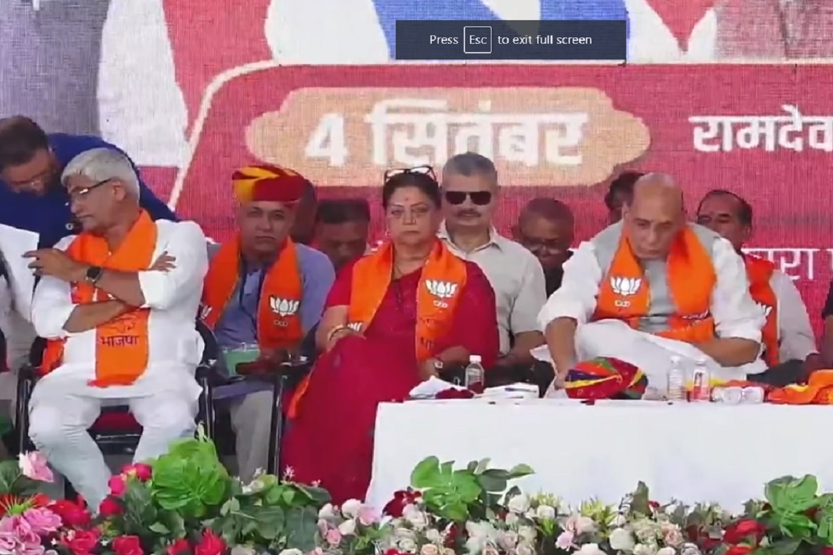 जैसलमेर के रामदेवरा में केंद्रीय रक्षा मंत्री राजनाथ सिंह ने भाजपा के तीसरे चरण की परिवर्तन संकल्प यात्रा को हरी झंड़ी दिखाकर रवाना किया। एक आमसभा में सम्बोधित करते हुए राजनाथ सिंह ने ऐलान किया कि, इस बार राजस्थान में भाजपा की सरकार बनेगी। राजस्थान वीरों की भूमि है। पीएम नरेंद्र मोदी ने वैज्ञानिकों का हौसला बढ़ाया, जिस वजह से भारत चांद पर पहुंच गया। देश को वैज्ञानिकों पर गर्व है। आज भारत को दुनिया सुनती है। भारत का सम्मान बढ़ा है। भारत अब कमजोर भारत नहीं रहा। उन्होंने आगे कहाकि अर्थव्यवस्था में भारत अभी पांचवे नम्बर पर है। परिवर्तन संकल्प यात्रा का मकसद जनता से सीधे संवाद करना है। कांग्रेस पर तंज कसते हुए कहा कि जिस देश में मंगलयान और चंद्रयान की सफल लॉन्चिंग और लैंडिंग हो रही है, वहां कांग्रेस का ‘राहुल यान’ पिछले बीस साल से लांच हो नहीं पा रहा है। इस अवसर पर पूर्व सीएम वसुंधरा राजे, केंद्रीय मंत्री गजेंद्र सिंह शेखावत, कैलाश चौधरी, अर्जुनराम मेघवाल, प्रदेशाध्यक्ष सीपी जोशी और नेता प्रतिपक्ष राजेन्द्र राठौड़ समेत कई नेता मौजूद थे।