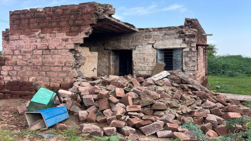 पोकरण क्षेत्र के डिडाणिया गांव में स्थित आंगनबाड़ी केन्द्र के भवन का एक हिस्सा सोमवार शाम अचानक गिरकर ध्वस्त हो गया। गनीमत रही कि यहां कोई नहीं होने से बड़ा हादसा टल गया। गौरतलब है कि क्षेत्र के कई गांवों में वर्षों पूर्व आंगनबाड़ी केन्द्र भवन बनाए गए थे। जिनकी मरम्मत को लेकर स्थानीय स्तर से प्रस्ताव तैयार कर भिजवाए गए है, लेकिन उच्च स्तर से अनुमति नहीं मिल पा रही है। ऐसे में कई भवन क्षतिग्रस्त पड़े है। क्षेत्र के डिडाणिया गांव में आंगनबाड़ी केन्द्र भवन भी क्षतिग्रस्त था। गत दिनों बारिश के बाद भवन के गिरने का खतरा बढ़ गया था। सोमवार शाम अचानक भवन एक हिस्सा भरभराकर ध्वस्त हो गया। गनीमत रही कि इस दौरान कोई बच्चा, कार्मिक या ग्रामीण यहां नहीं था, जिससे बड़ा हादसा टल गया। सूचना मिलते ही महिला एवं बाल विकास परियोजना अधिकारी करणसिंह राठौड़ ने डिडाणिया पहुंचकर मौका मुआयना किया।