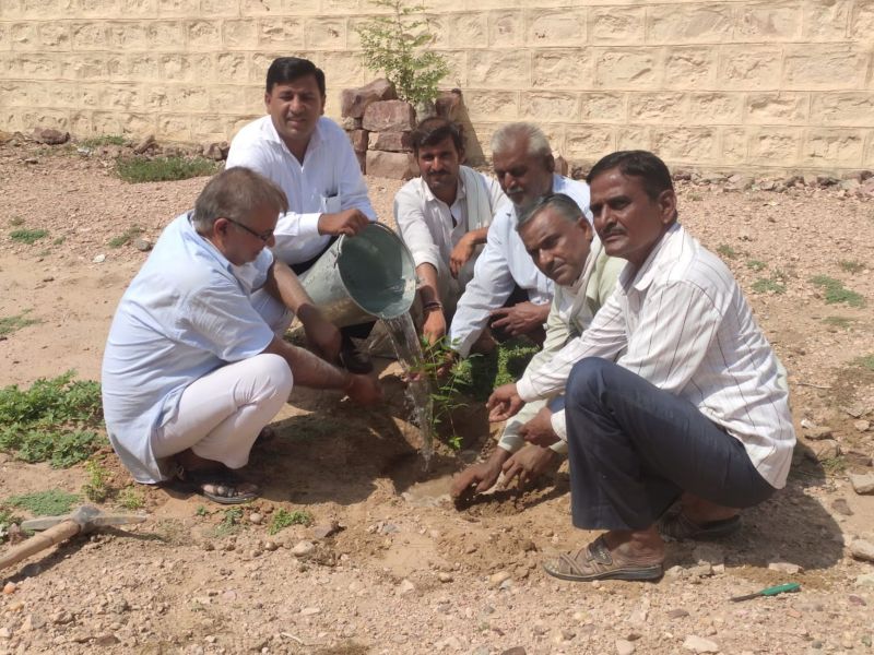 पोकरण. क्षेत्र में पौधरोपण अभियान लगातार जारी है। आमजन की ओर से पौधे लगाकर पर्यावरण संरक्षण का संकल्प लिया जा रहा है। कस्बे के माहेश्वरी समाज श्मशान स्थल पर शुक्रवार को दूसरे दिन भी युवाओं की ओर से पौधे लगाए गए। युवा सामाजिक कार्यकर्ता दीपक गांधी के निर्देशन में राष्ट्रीय राजपूत करणी सेना के जिलाध्यक्ष सांगसिंह गड़ी, मांगीलाल चाण्डक, कपिल गांधी, ओमप्रकाश, मनोज, आकाश गांधी, मिश्रीलाल चौधरी सहित समाज के लोगों की ओर से पौधे लगाए गए। उनकी ओर से पूर्व में लगाए गए पौधों के ट्री-गार्ड लगाकर सुरक्षा घेरे बनाए गए।